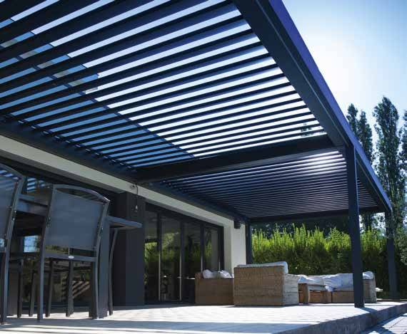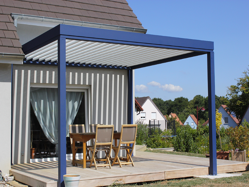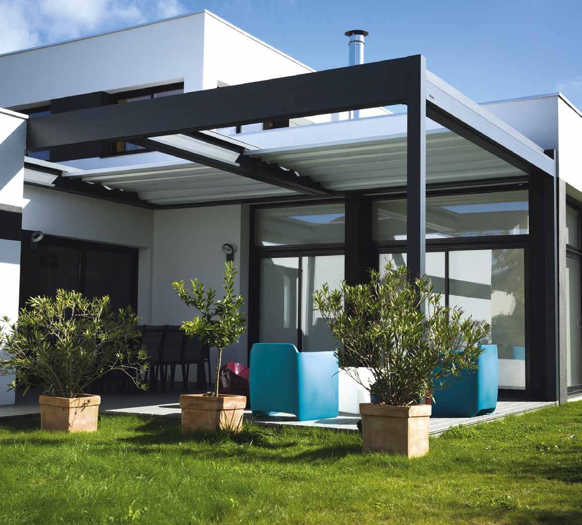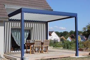 Notre spécialité : les pergolas bioclimatiques. Ce type d’installation vous permet, en fonction du climat extérieur, de gérer la lumière, la chaleur, la circulation de l’air et le taux d’humidité à l’intérieur de la pergola. Cette pergola étant généralement équipée d’une télécommande et d’une station météo, c’est vous qui êtes maître du mouvement des lattes en fonction du temps et de vos envies.