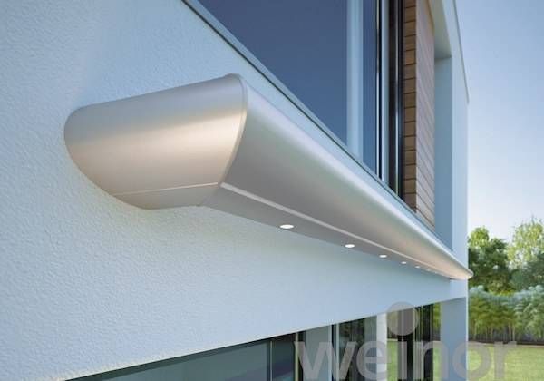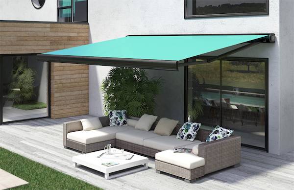 Le store semi-coffre qui abrite la toile et tout en laissant visible le lambrequin avec une touche déco.